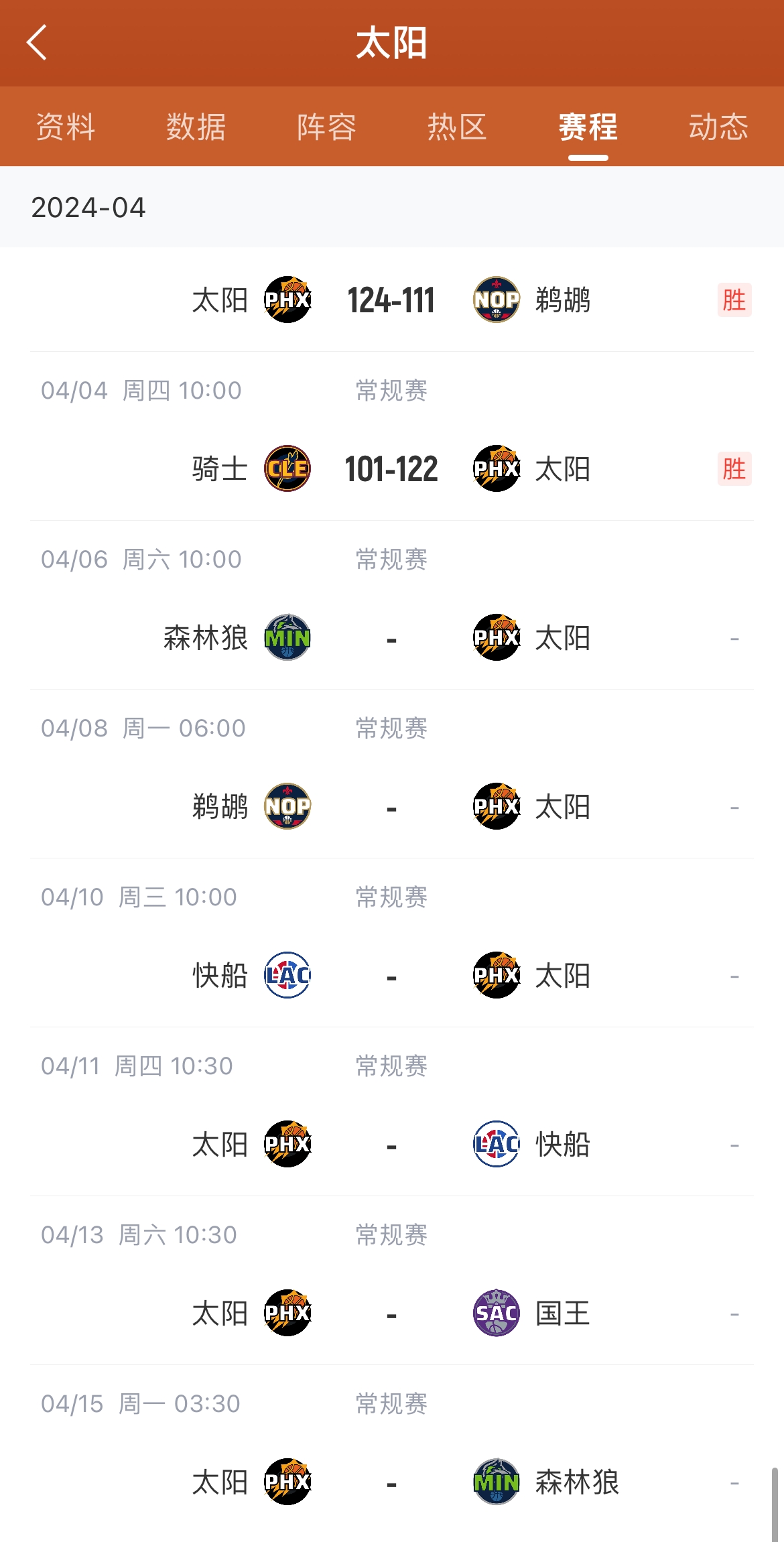 太阳还剩最后6场比赛,他们将两打快船和森林狼,剩余两场是打国王和鹈鹕,这四支球队都在西部前八。