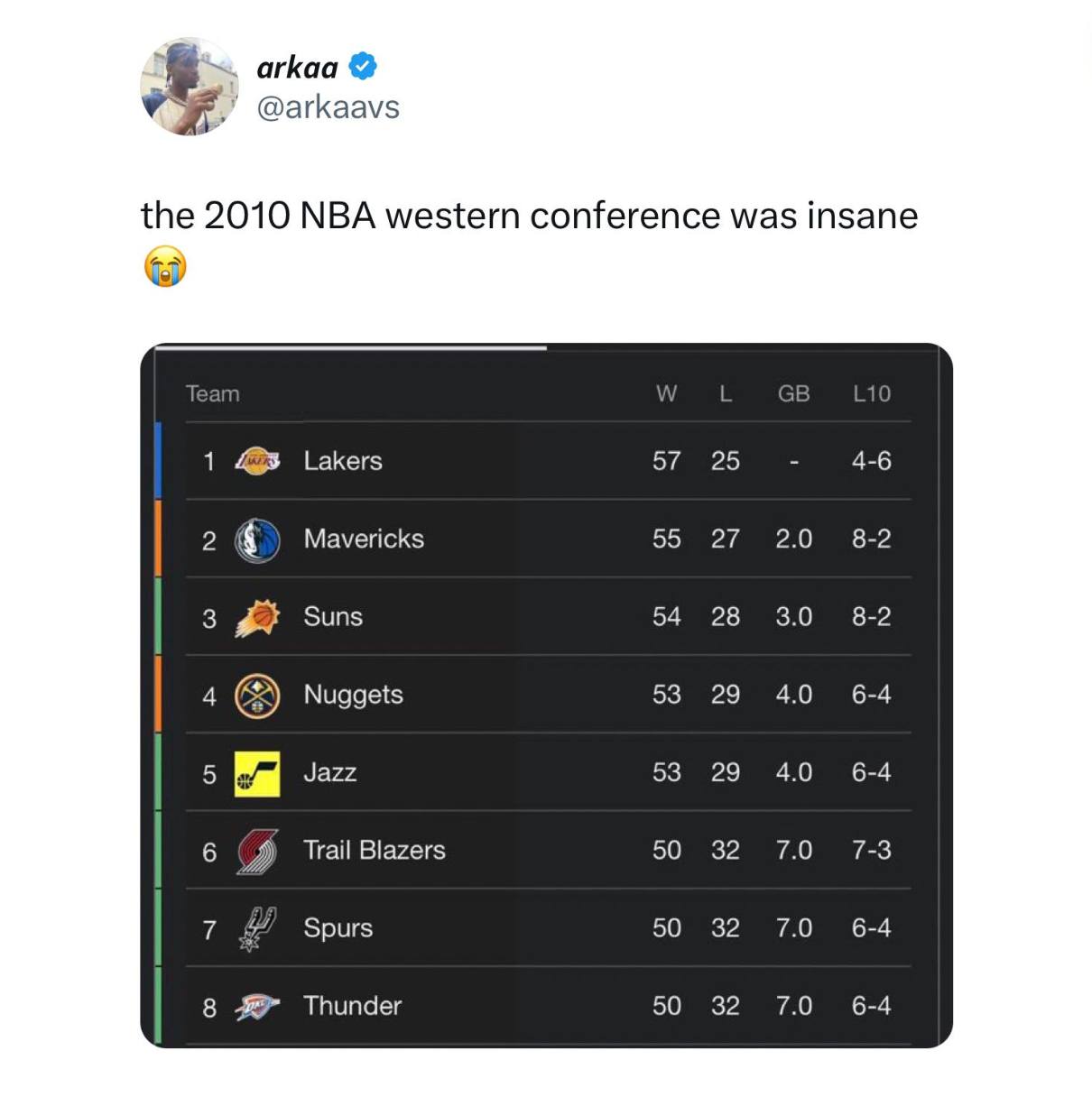 2010年的西部有多强?50胜32负仅能排在西部第八