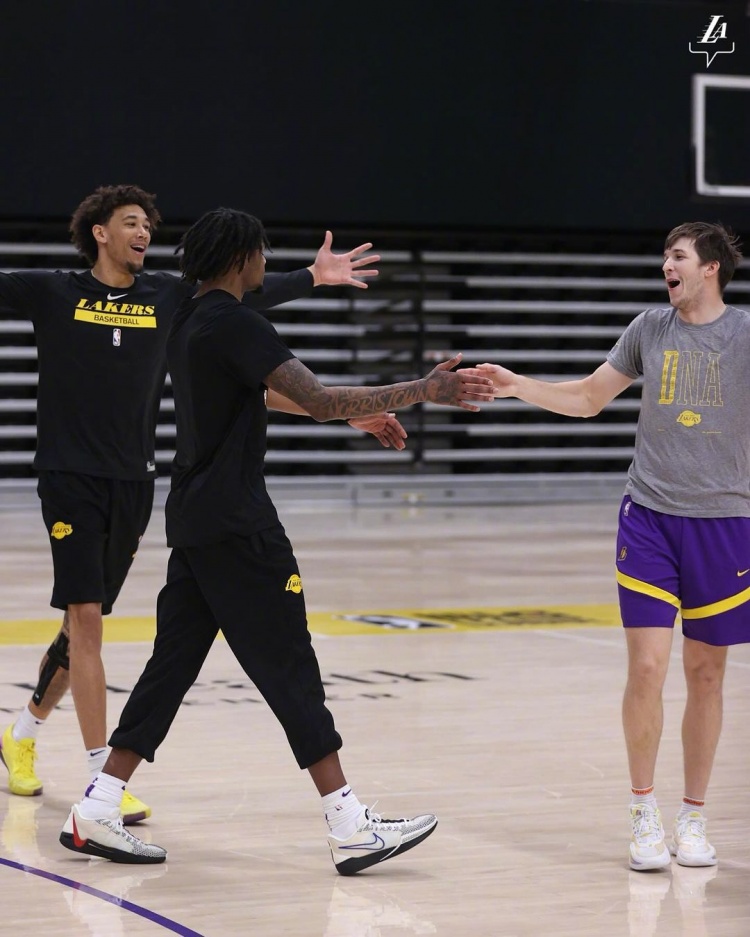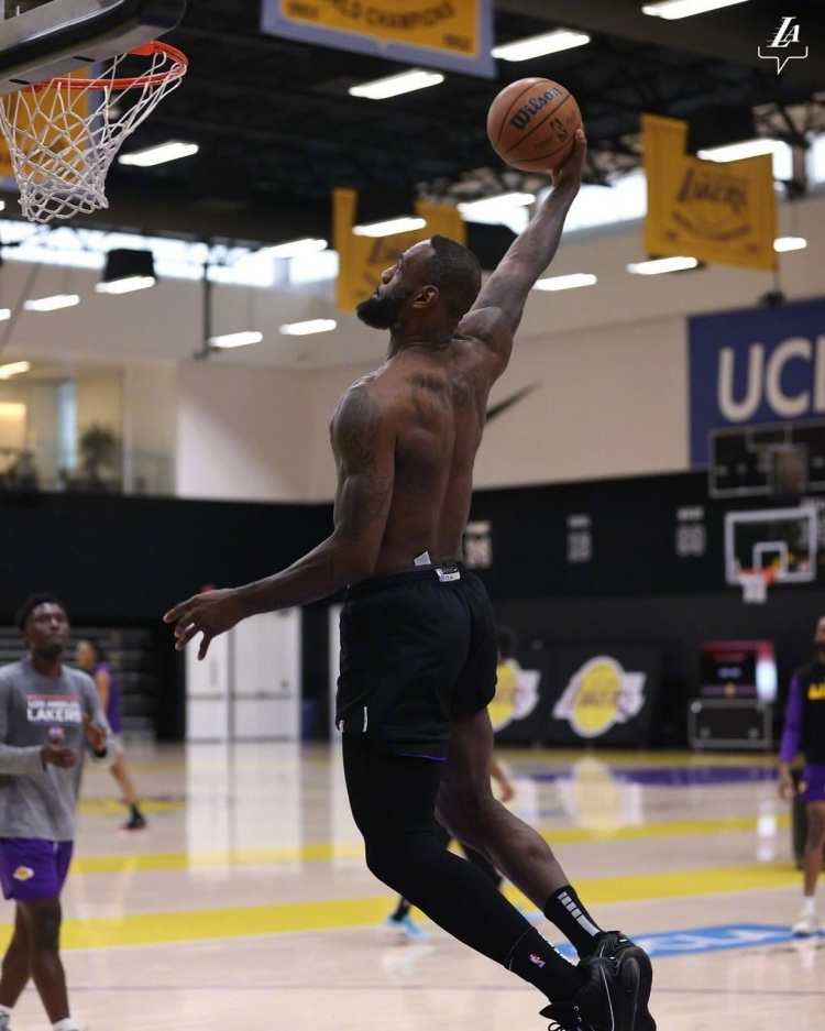近9战8胜&士气正盛!湖人训练照:全员面带笑容 詹姆斯光膀子暴扣