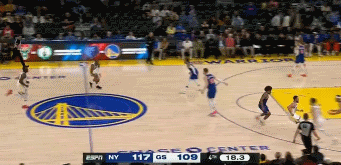 3月19日讯 NBA常规赛,勇士主场112-119不敌尼克斯。