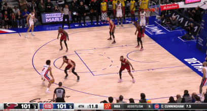 而在今天热火104-101击败活塞的比赛中,康宁汉姆在球队平局时没有选择压时间,反而给热火留下了足够的时间。热火直接打起反击,阿德巴约在三分线外2米远三分一击直接压哨绝杀。