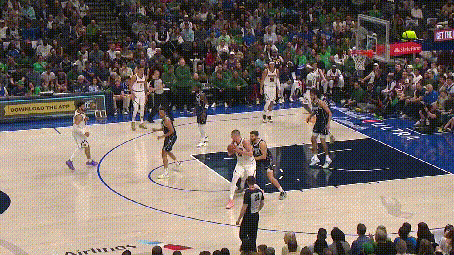 穆雷先挡拆找到东契奇,之后再跟约基奇挡拆,于是防穆约挡拆的就成了东契奇+克勒贝尔——好么,独行侠场上动作最迟缓的两个人。