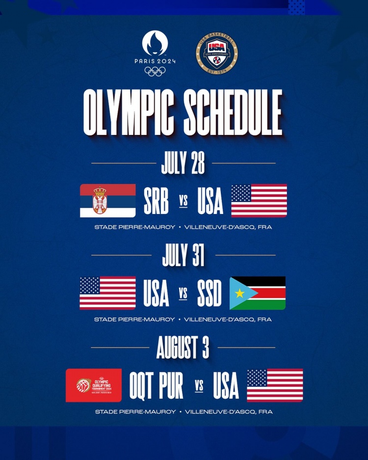 3月20日讯 2024巴黎奥运会男子、女子篮球赛抽签仪式今日结束,美国男篮与塞尔维亚男篮、南苏丹男篮和奥运落选赛波多黎各赛区胜者队伍分在一组。