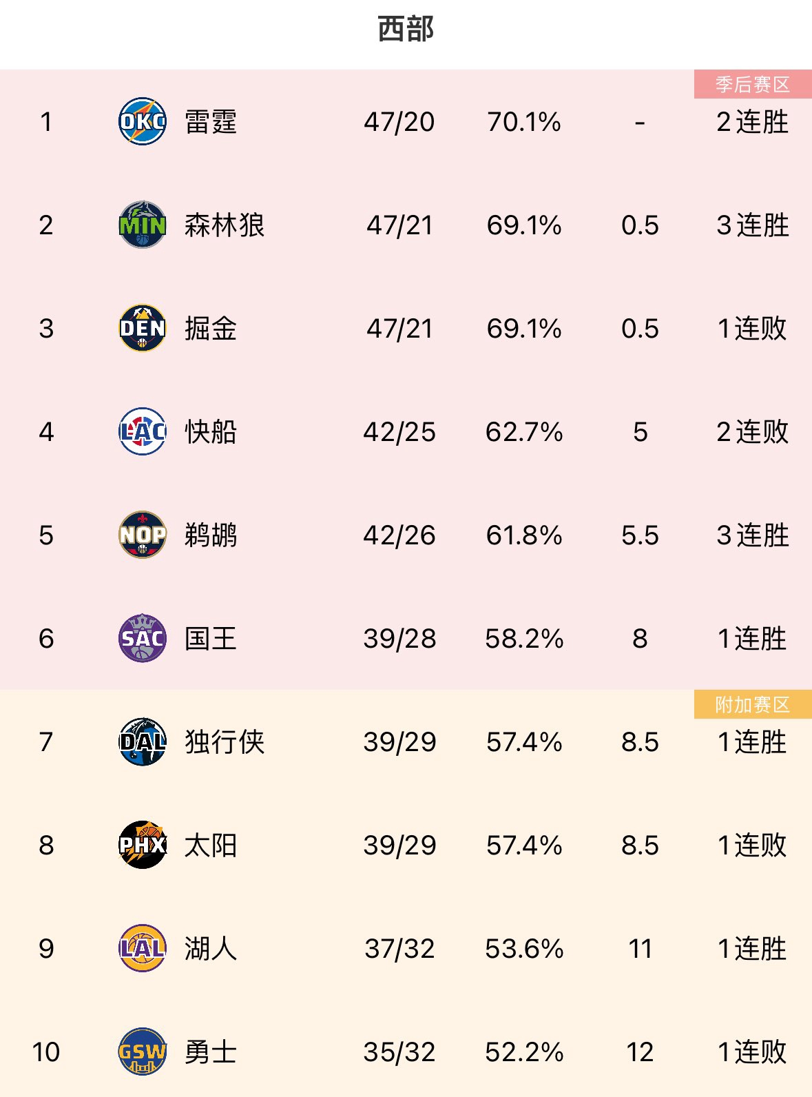 此役过后鹈鹕(42胜26负)的胜场已经追平快船,仅落后西部第四的快船0.5场了。