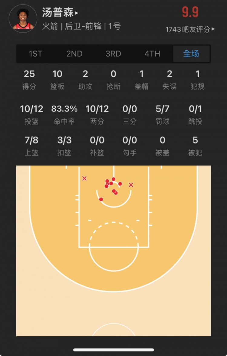 火箭4号秀 阿门-汤普森 出战32.2分钟