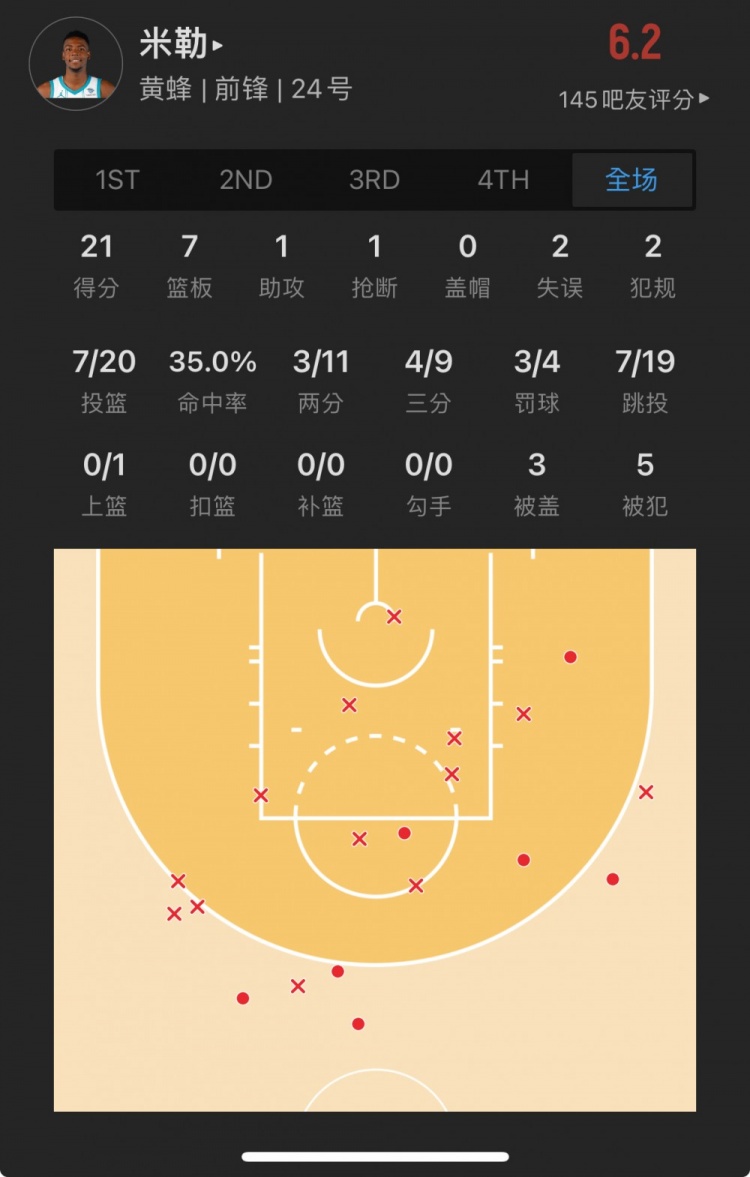 黄蜂榜眼秀 布兰登-米勒 出战32.4分钟