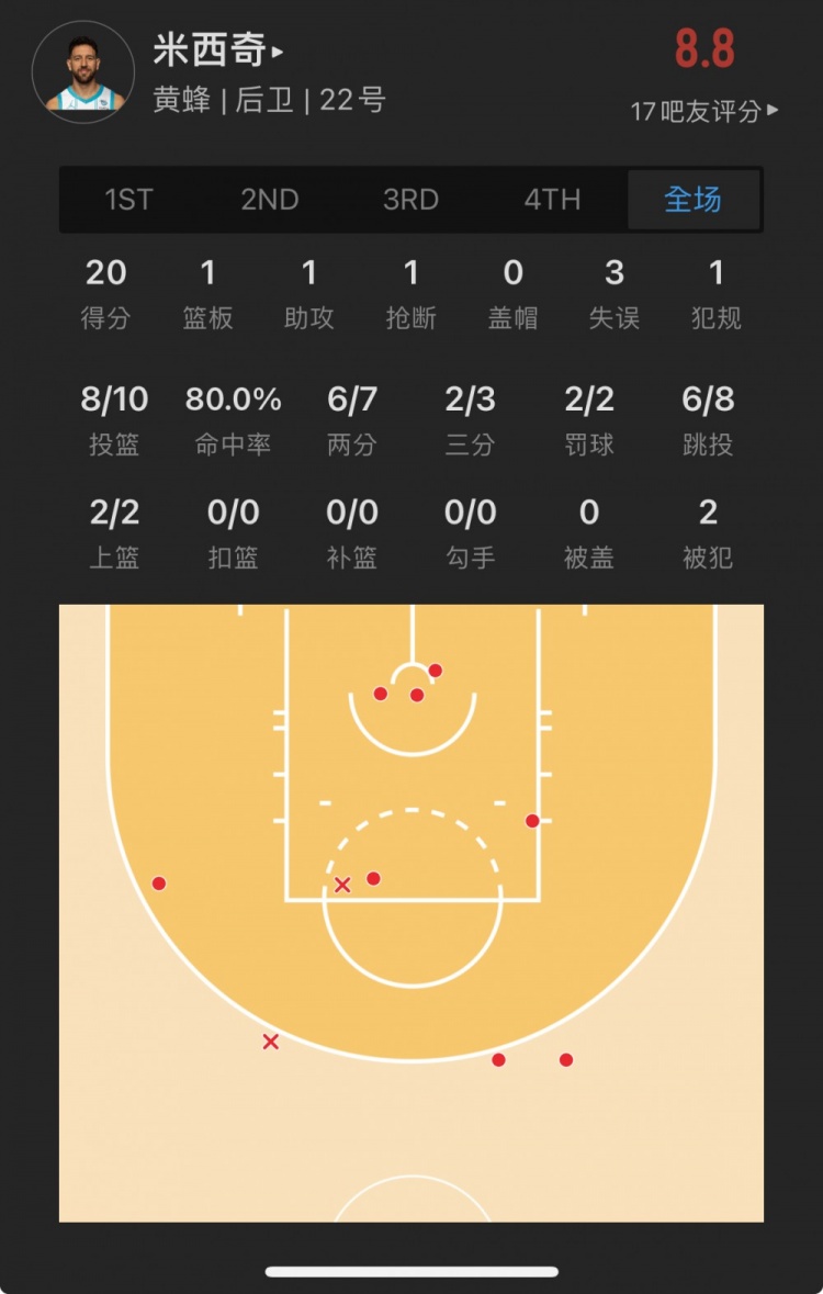 黄蜂14届52号秀 瓦西里耶-米西奇 出战26.9分钟