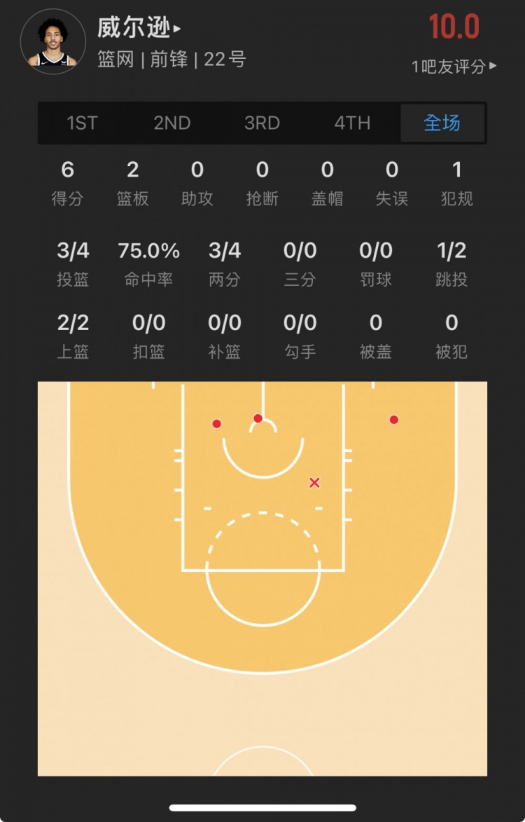 篮网51号秀 杰伦-威尔逊 出战9.7分钟