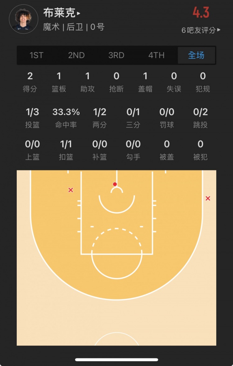 魔术6号秀 安东尼-布莱克 出战9.0分钟