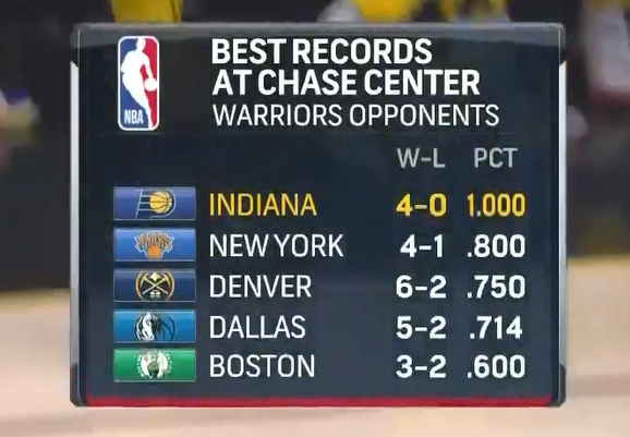 自搬到大通中心以来,勇士在这座主场还没有步行者,5战全败!