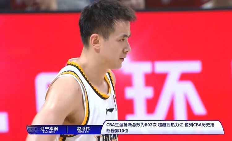 目前比赛进行到第二节,辽宁球员赵继伟已经拿到两次抢断,这样他的生涯总抢断数达到802次,超越西热力江位列CBA历史第十位。