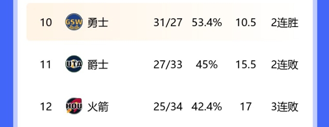在3月1日输给太阳之后,火箭遭遇了三连败,当时他们排在西区第12,落后第10的勇士6.5个胜场。