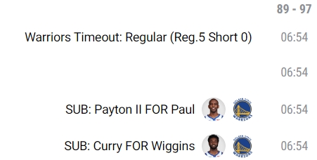 库里上场时,勇士落后8分: