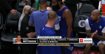 说了些啥?泰伦-卢换下主力宣布放弃 威少在替补席和哈登聊两句