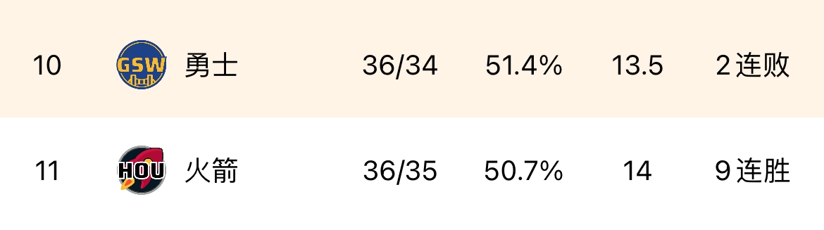 同时,火箭与西部第十的勇士胜场差只剩0.5了!