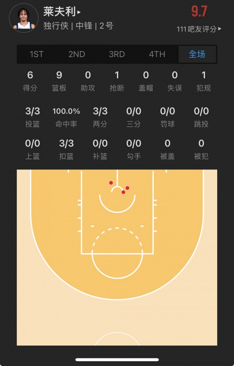 独行侠12号秀 德雷克-莱夫利二世 出战18.3分钟