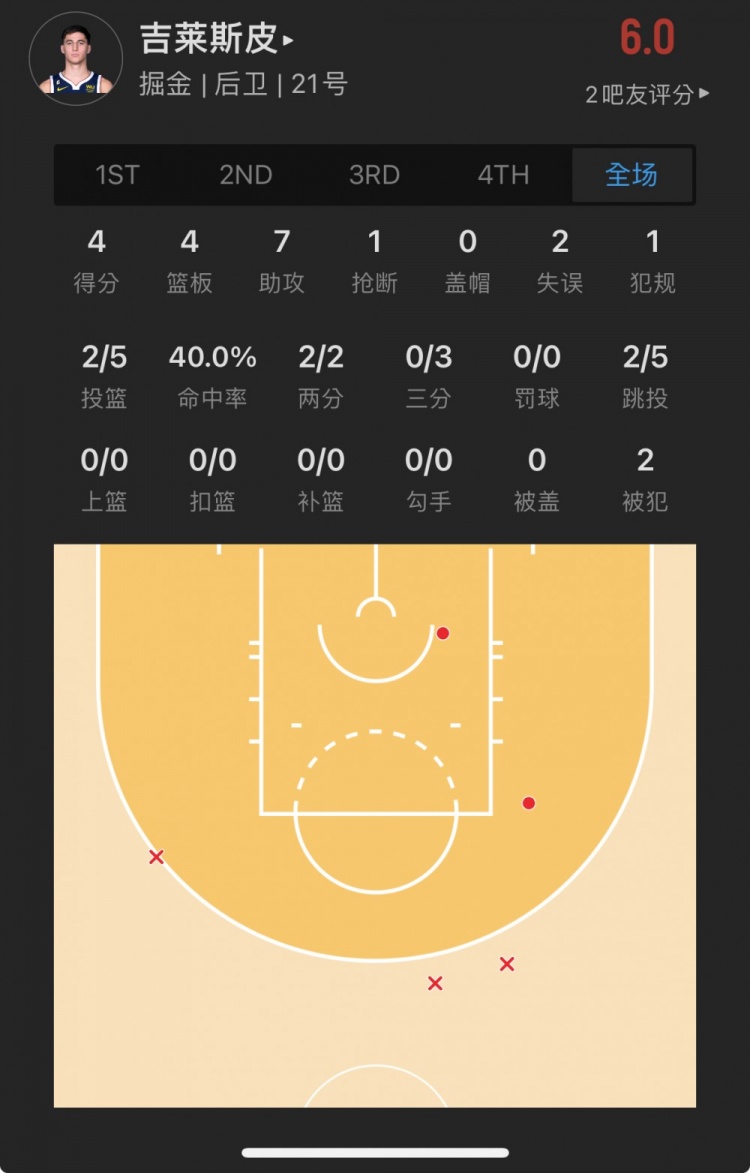 掘金落选秀 科林-吉莱斯皮 出战21.0分钟
