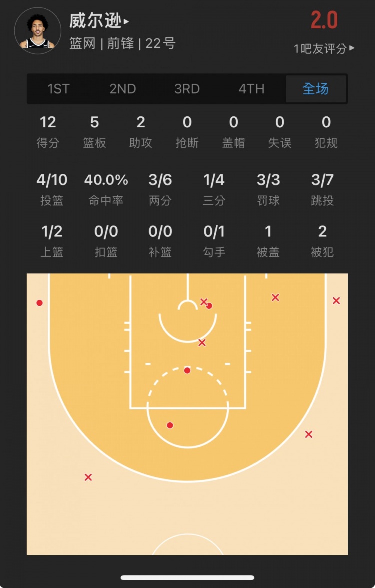篮网51号秀 杰伦-威尔逊 出战30.4分钟