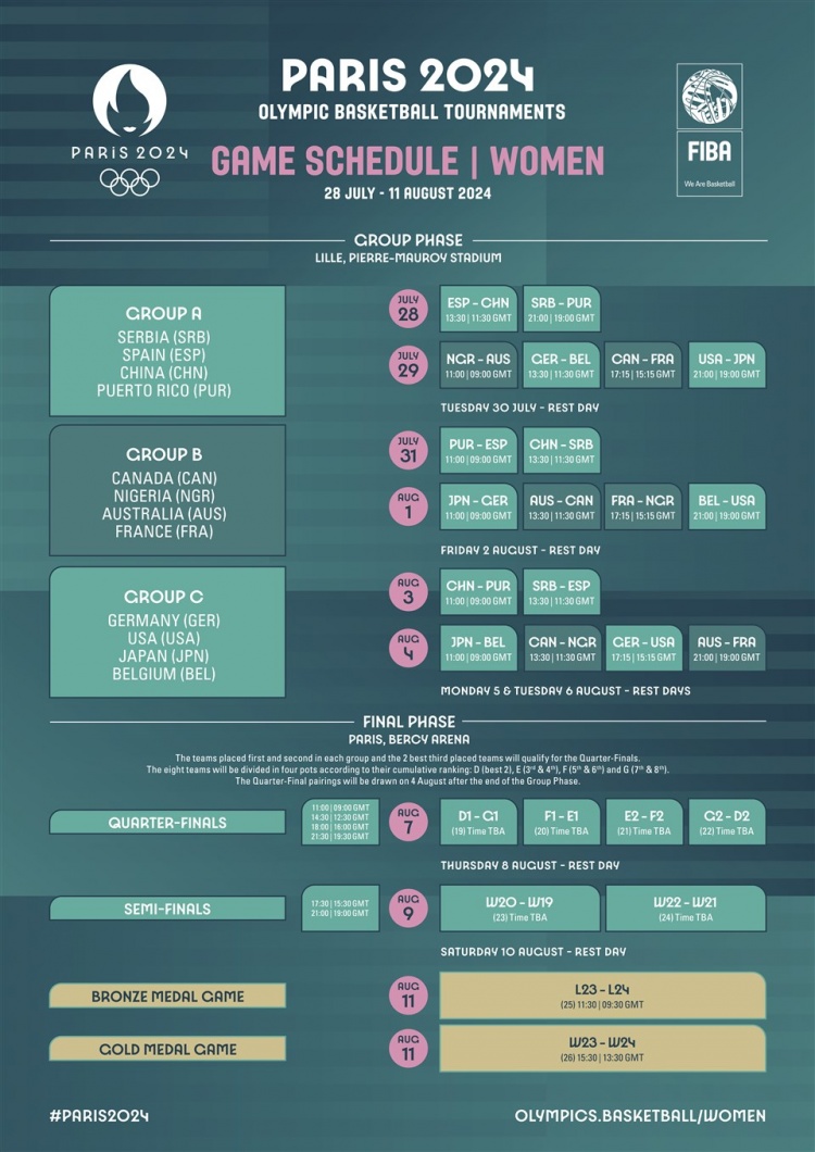 3月28日讯 FIBA官方更新巴黎奥运会女篮小组赛具体赛程,中国女篮首战将在7月28日晚19点半打响。
