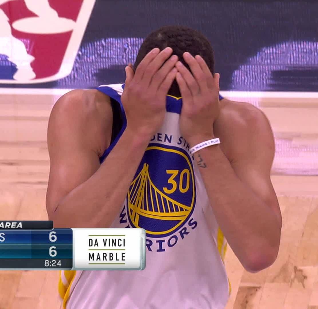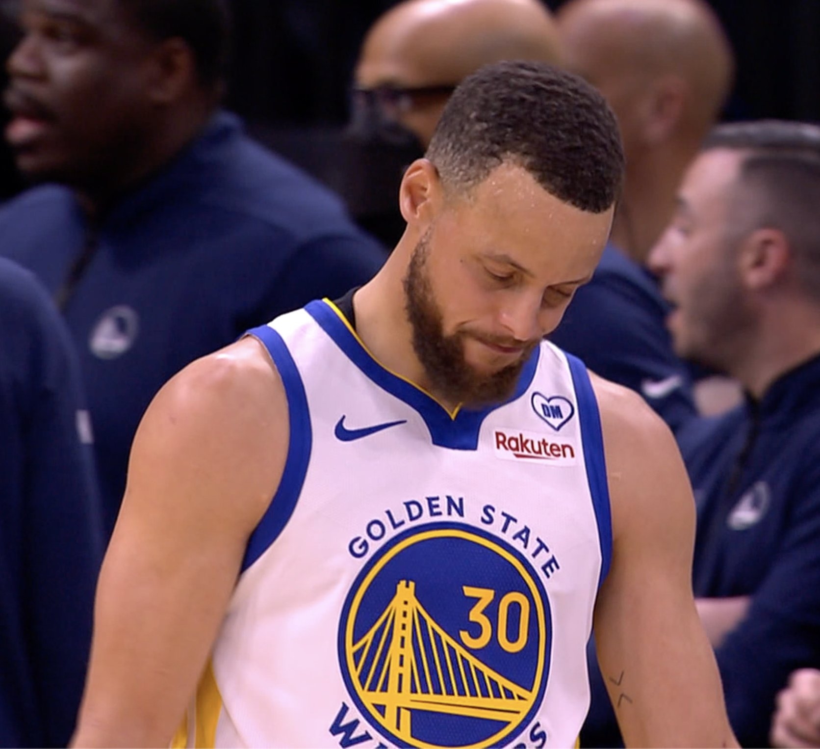 追梦被驱逐离场 球员们都坐在替补席 库里站着显得很无奈