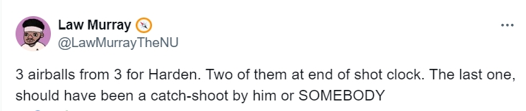 哈登单打艾萨克撤步三分三不沾 船记:3次三不沾了
