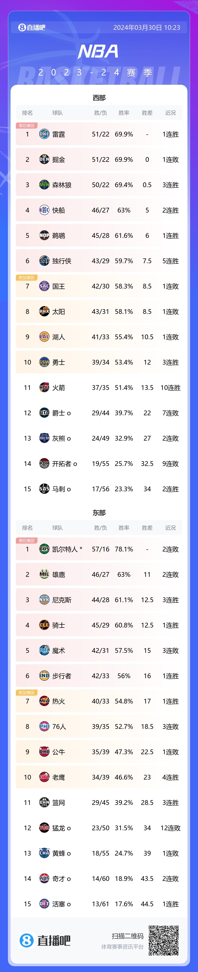 而国王与独行侠迎来直接对话,三者今日最后的排名要看这场比赛的赛果。