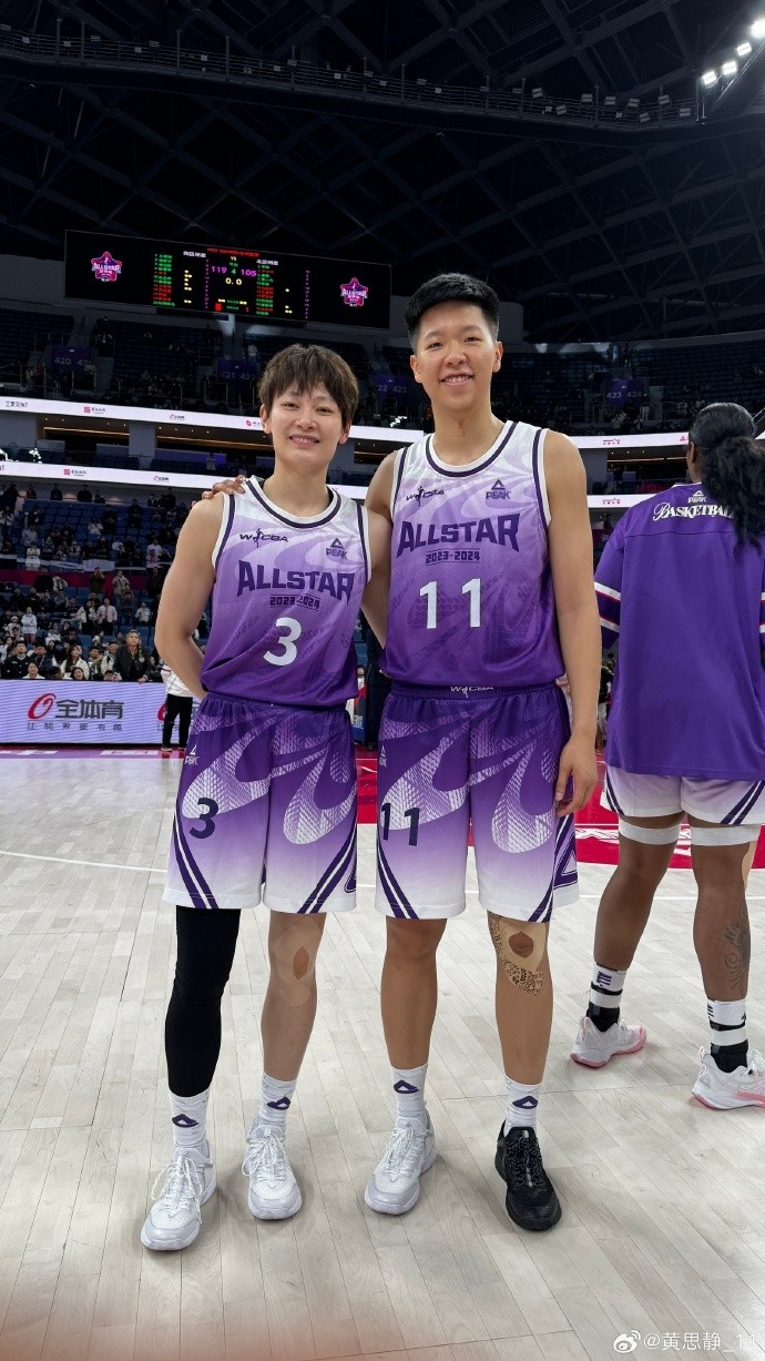 黄思静晒出一组现场照,并配文写道:“全明星周末圆满开心、我的闺蜜舍友队友杨力维她也很开心。谢谢大家的支持。”