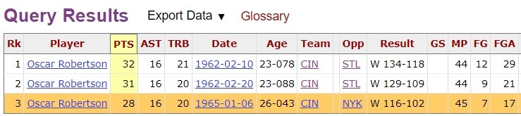 这样一来,约基奇成为NBA历史上继1965年的奥斯卡-罗伯特森以来首位单场至少拿下26分18板16助的球员!