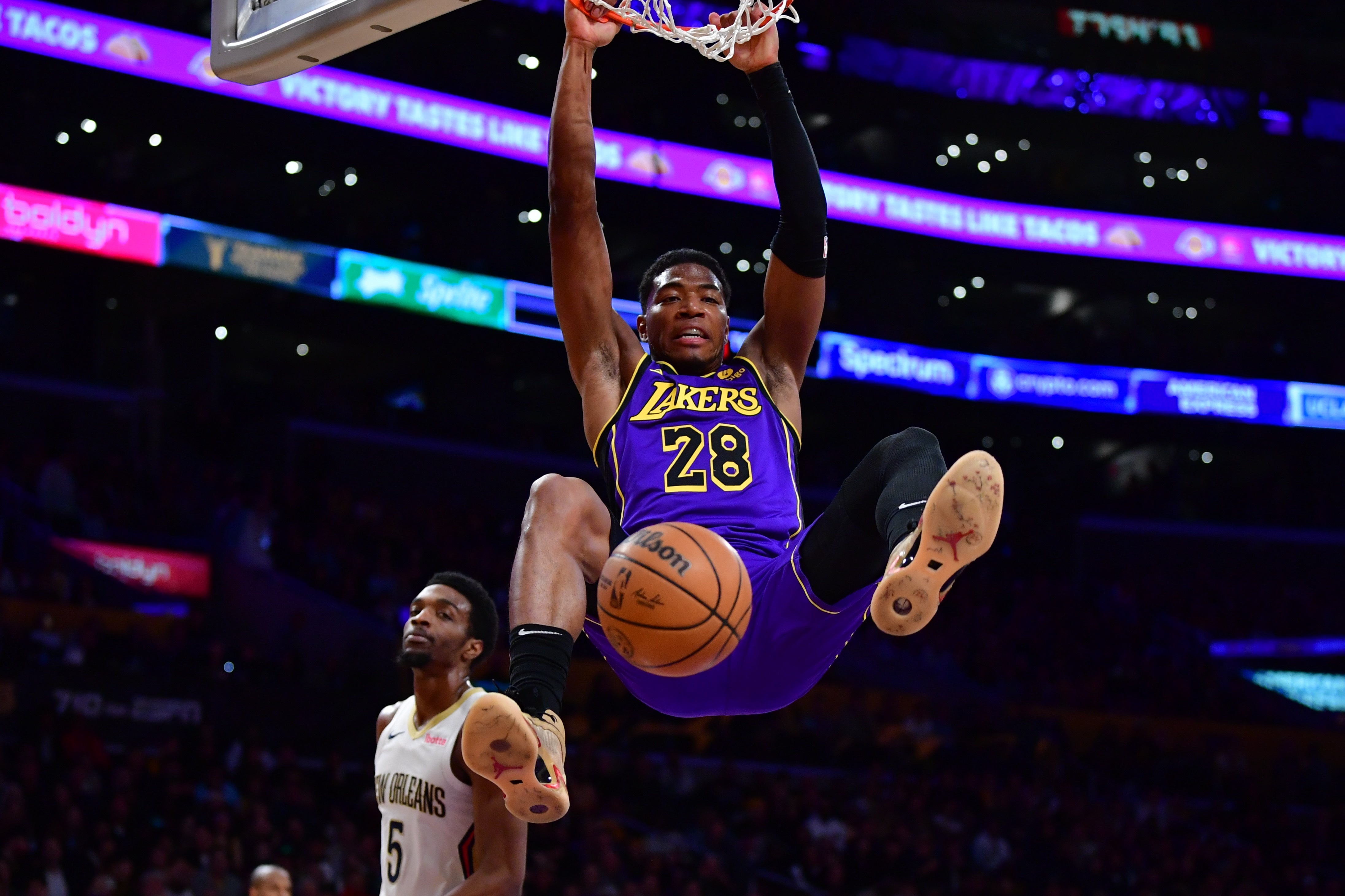 伍德受伤,雷迪什伤愈归来后状态一落千丈,范德比尔特还在养伤,海斯今天也因伤缺席,湖人替补席的得分任务压到了丁威迪和普林斯身上。普林斯打替补后依然可以用不错的效率场均得到8分,丁威迪只能偶尔爆发一场,场均6.3分的得分和37.4%的投篮命中率并不理想。
