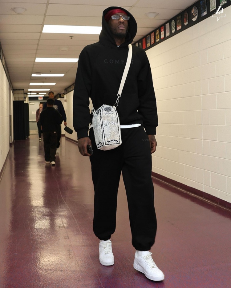 做客华盛顿!詹姆斯黑色衣+黑帽子大哥范儿十足 水拉略显商务