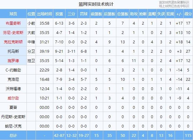 本场比赛,篮网多点开花,9人出场均有得分进账,6人得分上双,其中托马斯27分、克洛尼22分、布里奇斯14分、克拉克斯顿14分、施罗德12分、芬尼-史密斯10分。