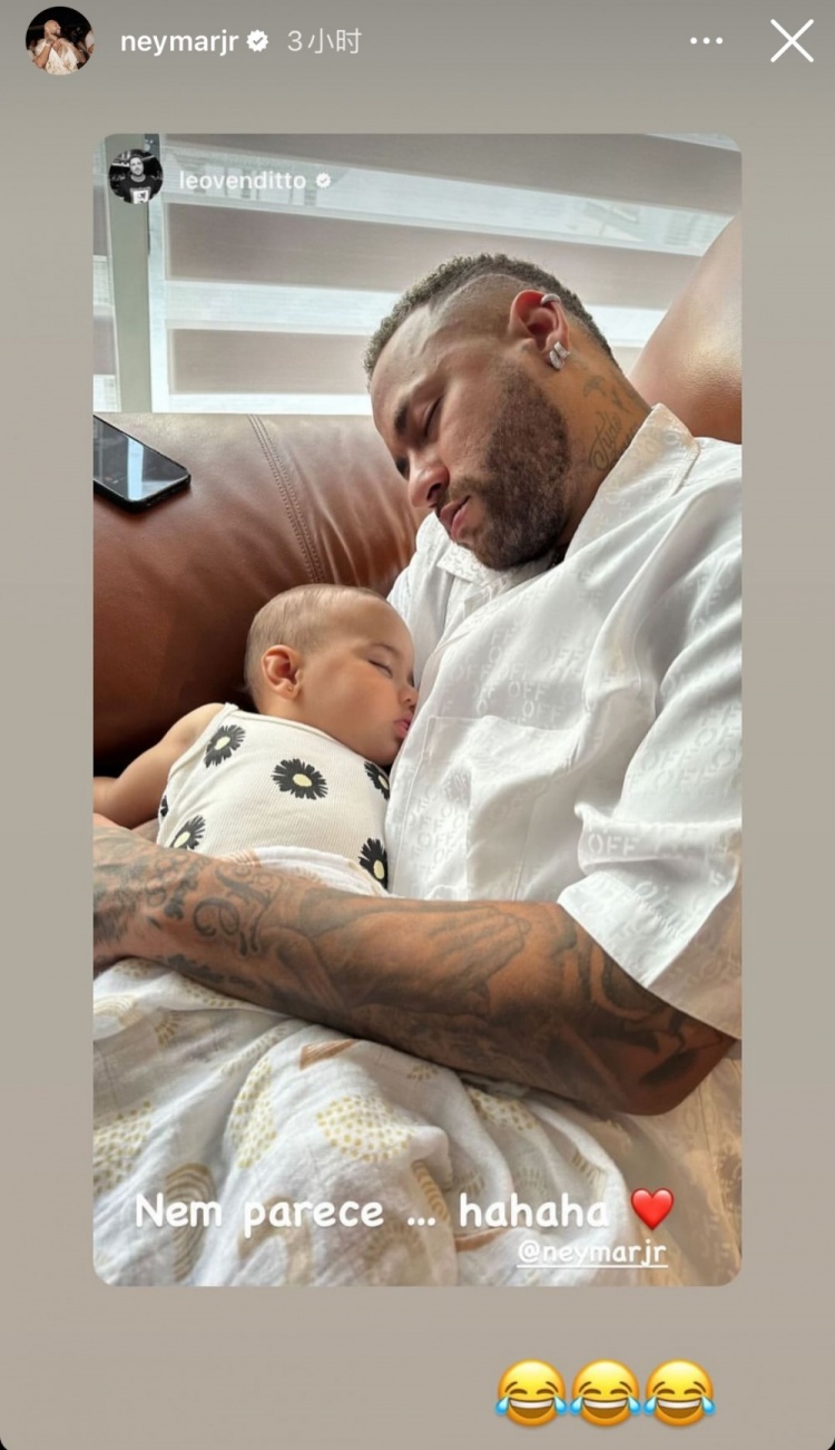 4月5日讯 今日,内马尔更新社媒,转发朋友拍摄的自己怀抱小女儿入睡的照片。