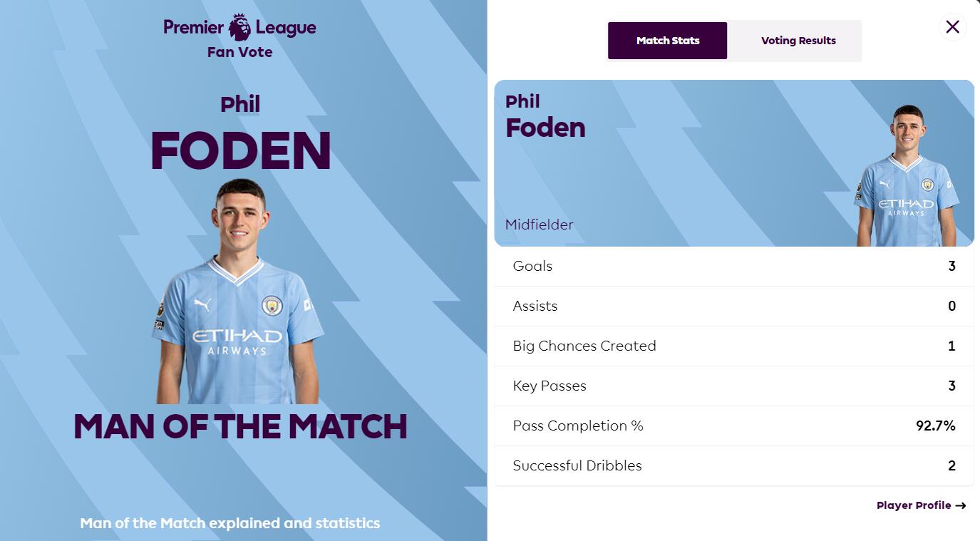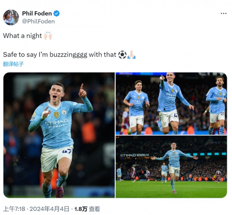 可,就算是帽子成就完成了,福登还是十分轻巧的跳了下,和队友拍了下掌就结束了庆祝。他对自己的进球数真的是“毫不在乎”,队伍的成功和分数到手,才是他想要的。