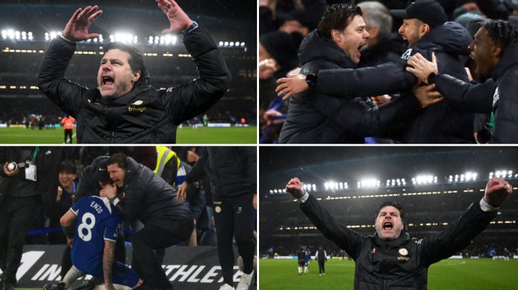 4月5日讯 切尔西读秒4-3绝杀曼联,波切蒂诺激情庆祝。