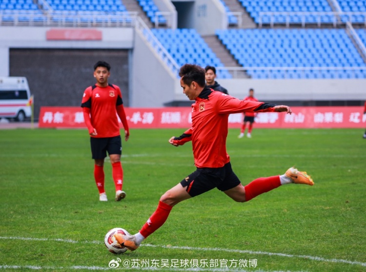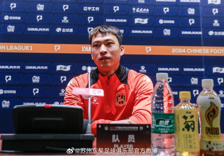 4月5日下午14:50,中甲第5轮第38场苏州东吴队赛前新闻发布会在沈阳奥体中心召开,主教练金大仪携队员黄嘉俊出席。