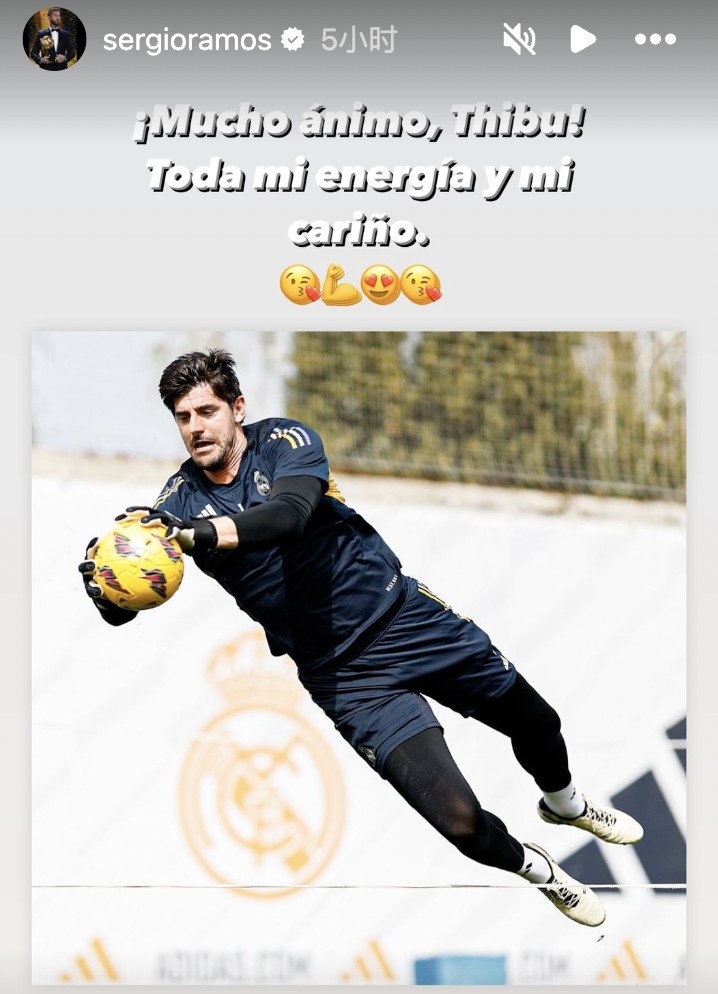 库尔图瓦在训练中再次遭遇重伤,前皇马队长拉莫斯发文激励比利时人:给你大大的鼓励,和我所有的能量与爱。