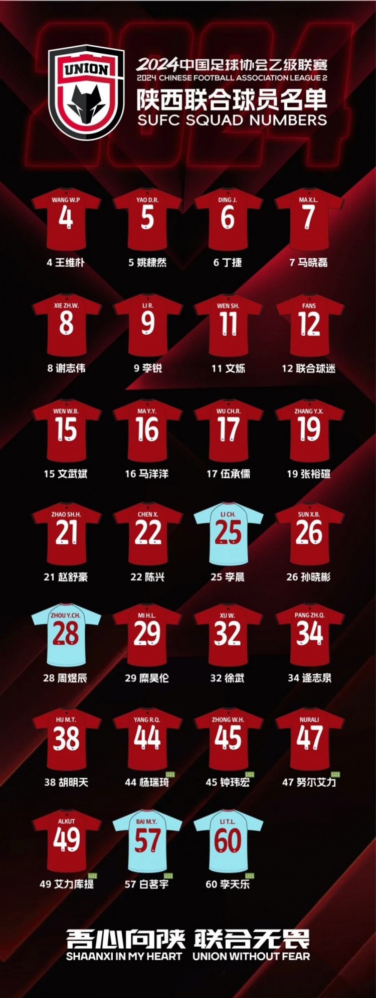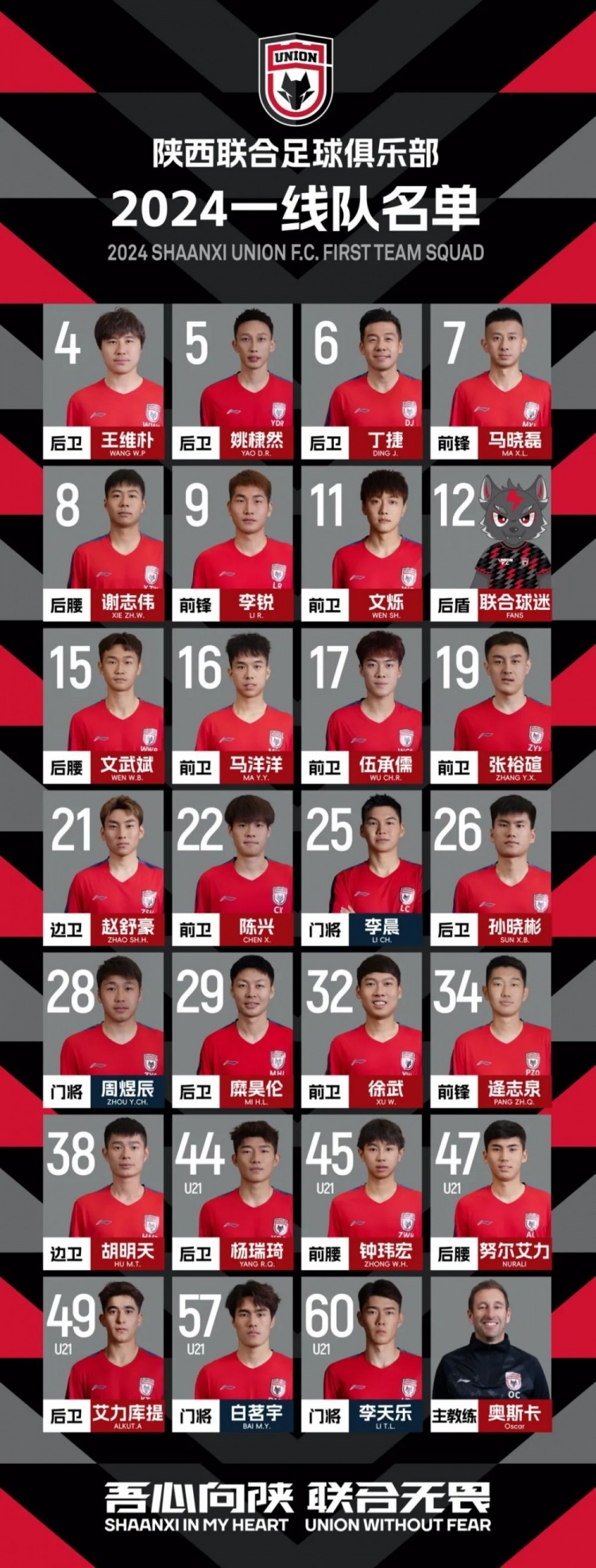2024赛季中乙联赛将于3月23日开幕。陕西联合首轮比赛于3月23日打响,客场挑战湖北青年星。现发布2024陕西联合一线队全家福、球员名单、号码等内容。