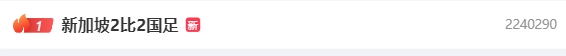赛后,话题新加坡2比2国足登上微博热搜第一。