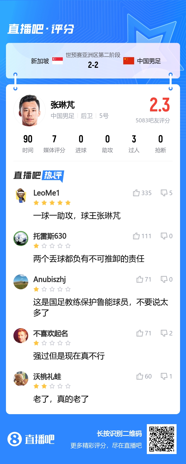 后防大坑吧友调侃张琳芃:一球一助攻,球王张琳芃