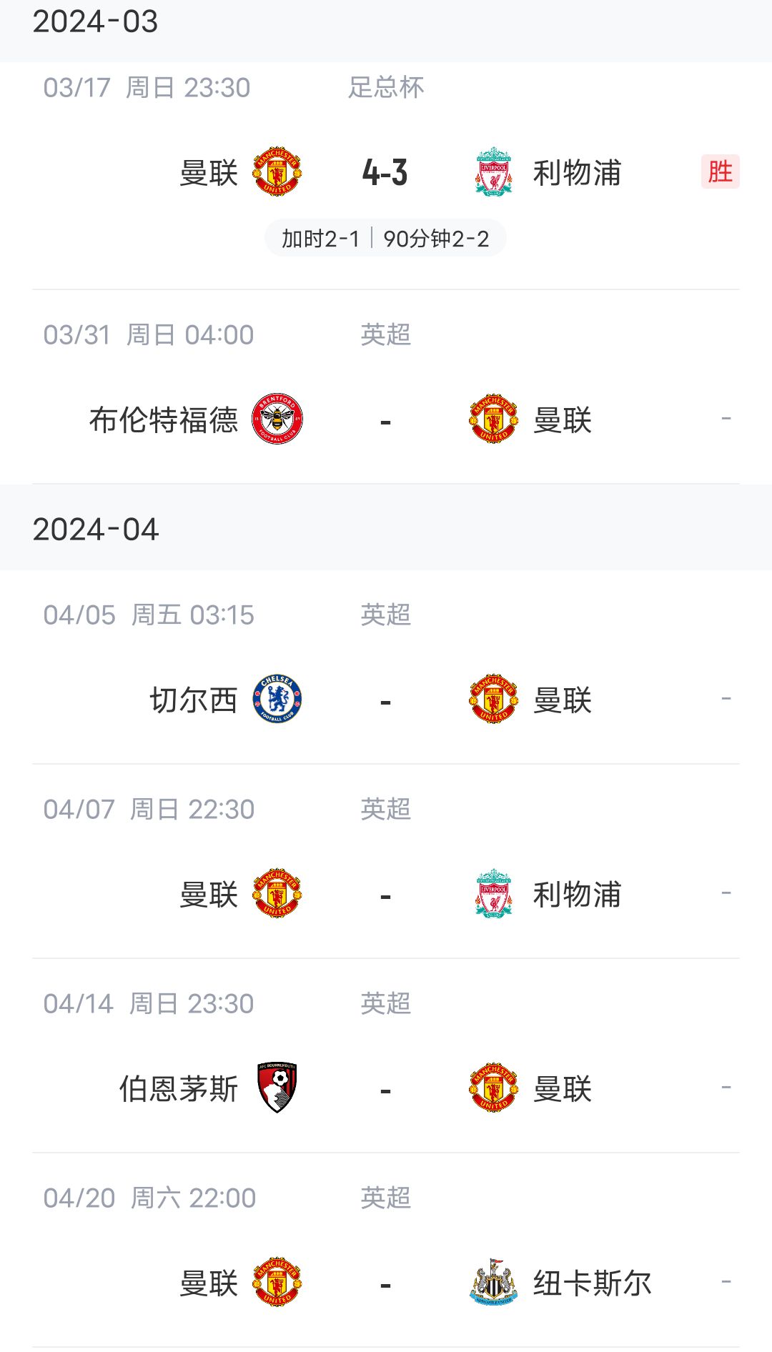 足总杯1/4决赛,曼联4-3绝杀利物浦,曼联各赛事已经连赢2场,近5场3胜2负。