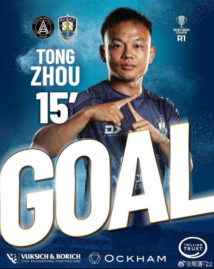 在奥克兰城对阵奥克兰联的新西兰联赛中,中国球员周通代表奥克兰城首发出战,并在第15分钟任意球破门,帮助球队最终以3-0的比分取胜。