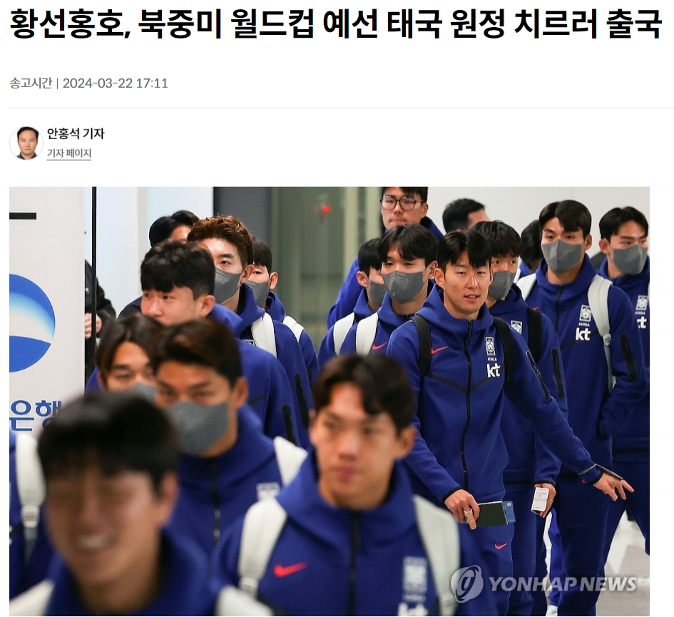 3月22日讯 据韩联社报道,与中国男足同组的韩国国家队今天下午已经启程前往泰国曼谷,参加世预赛第4轮客战泰国队的比赛。