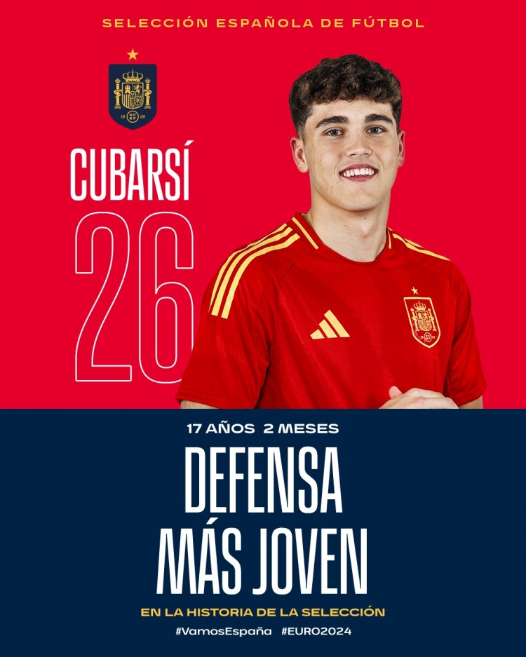 据西班牙队官方统计,17岁2个月的库巴西成为在西班牙国家队上演首秀最年轻的后卫球员,西班牙国家队官方账号在社交媒体上晒出海报,祝贺他达成这一成就。