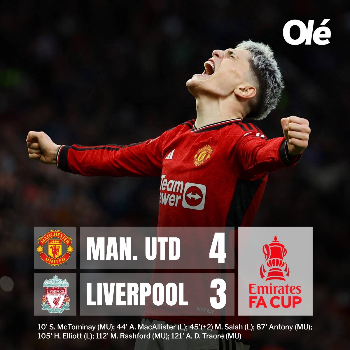 3月18日讯 足总杯曼联加时4-3绝杀利物浦。本场比赛,19岁的加纳乔打满120分钟,他在攻防两端极高的参与度受到了不少好评。本场曼联4粒进球,有3球都和加纳乔有关。