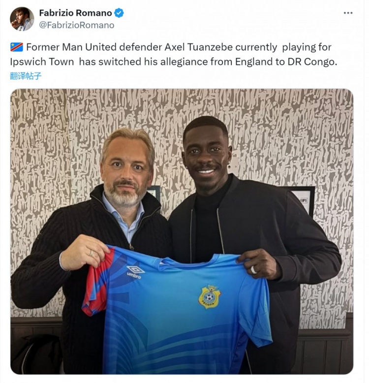 图安泽贝曾入选英格兰青年队,但没有代表英格兰国家队出场,罗马诺指出,这位26岁的中卫已经转而为民主刚果效力。