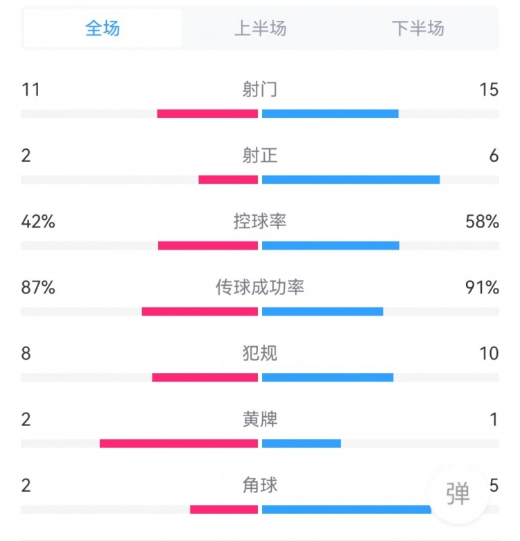 3月24日讯 友谊赛,德国2-0法国。双方全场重点数据对比如下↓(主队法国在前)