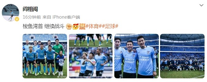赛后,阎相闯在社媒晒出了本场比赛的多张照片,并为此配文写道:“梭鱼湾首 继续战斗!”