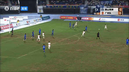 比赛第36分钟,侯煜左脚远射贴地斩破门,广州队1-0领先佛山南狮。