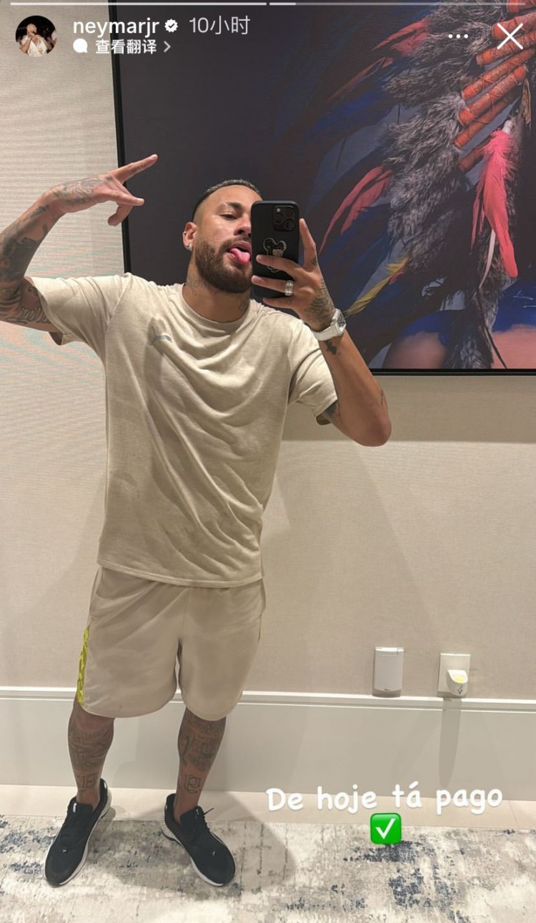 结束健身后,内马尔又晒出一张自拍照,照片中他做出了吐舌的搞怪表情,并写道:今天又努力了。