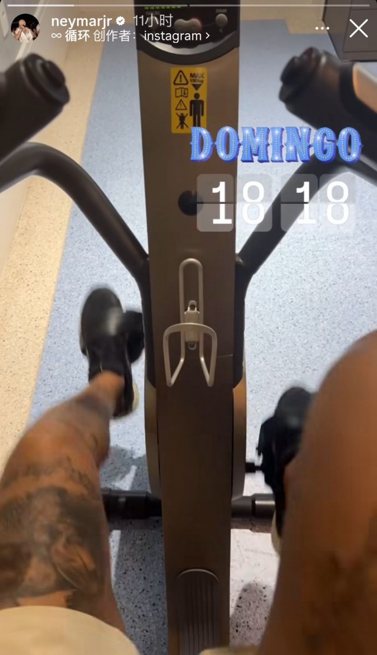 3月25日讯 今天,内马尔在社交媒体上晒出了一段自己在健身房骑单车进行锻炼的视频,并配文:周日,18:18。他似乎在表示自己在周末也在努力训练。